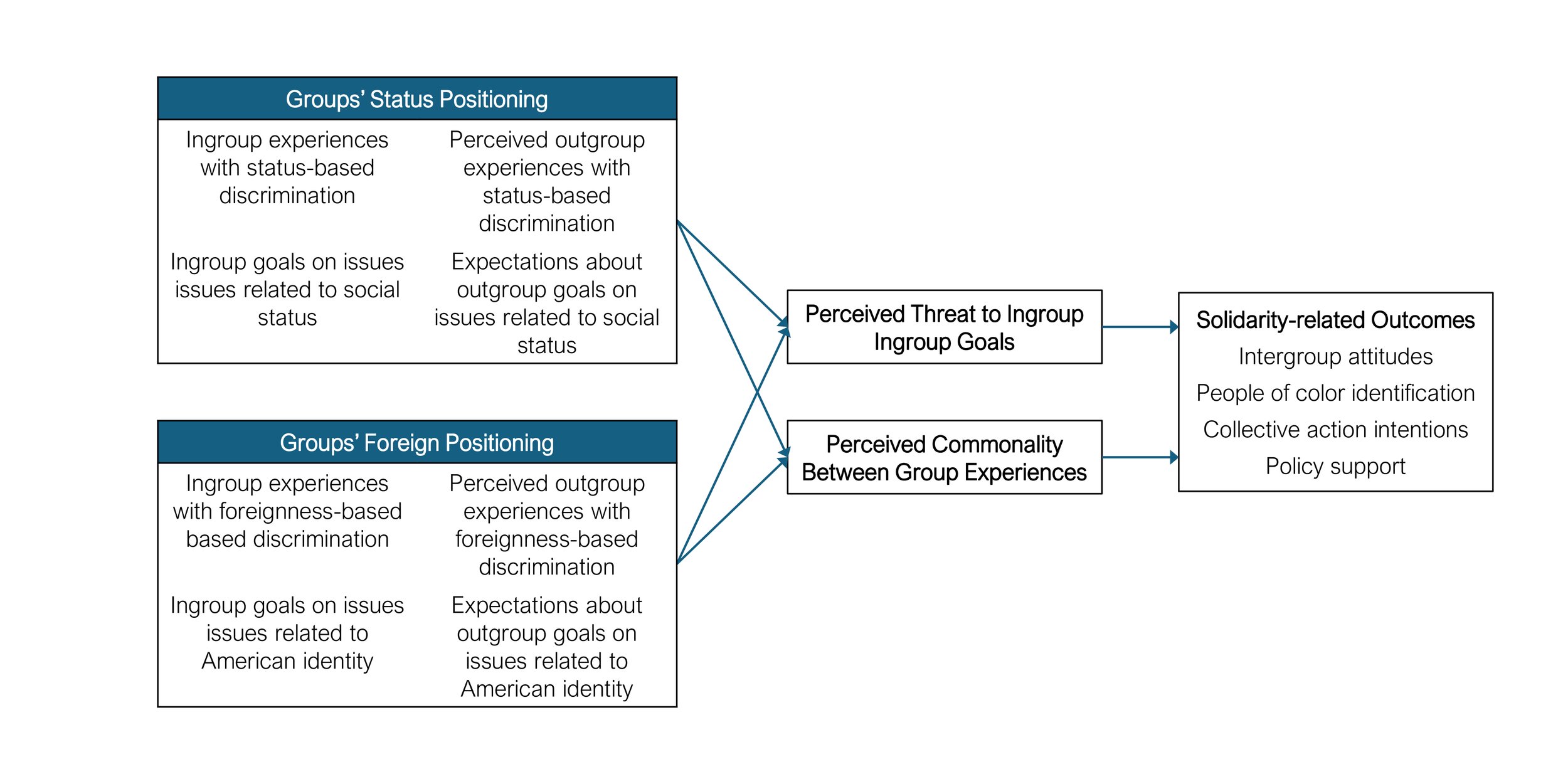 Figure 2 from Zou (in press). Working model of the processes through which group positions in the Racial Position Model can either impede or foster intra-minority solidarity.